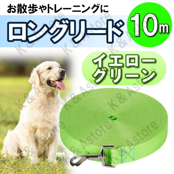 - ロングリード 10m 犬用 ドッグラン ペット 散歩 小型犬 中型犬 大型犬 長い リード 絡まない しつけ トレーニング イエローグリーン 黄緑