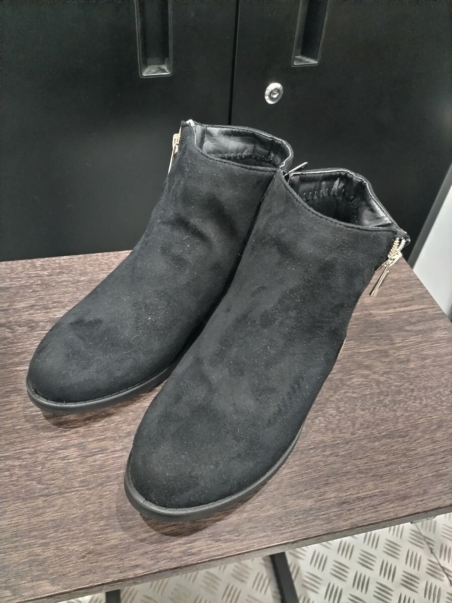 - ブーツ レディース ローヒール サイドファスナー 黒