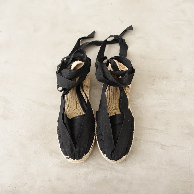 - Ron Herman×Terra d’espardenyes *エスパドリーユサンダル 37/23*レースアップシューズ黒×ナチュラル0825(sh10-2508-27)【62H52】