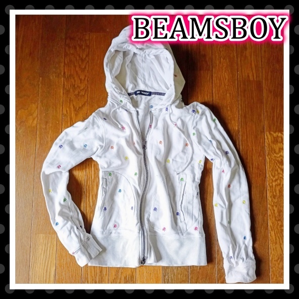 > BEAMSBOY ビームス ボーイ パーカー スウェット フード付き 髑髏 スカル レディース S M 160 150 レインボー がいこつ ドット キッズサイズ