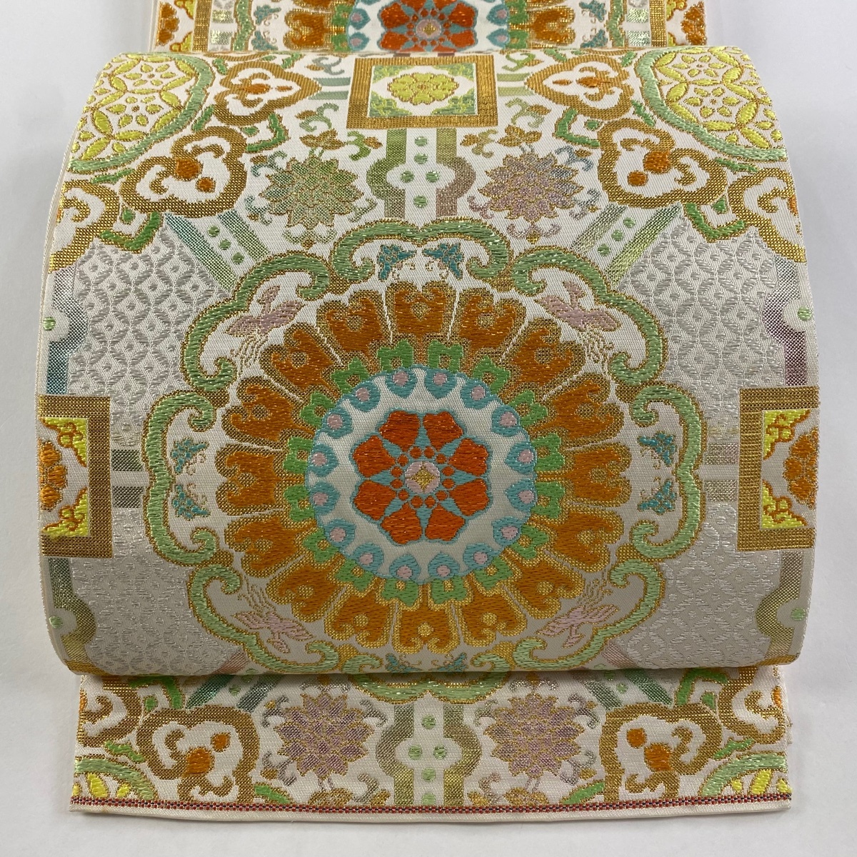 > 袋帯 逸品 龍村美術織物 落款 たつむら 関西仕立て クリーム 六通 正絹 【中古】