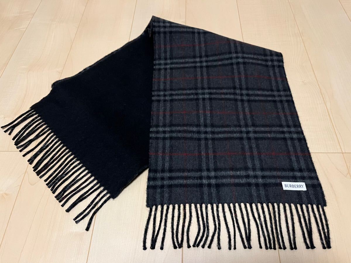 > BURBERRY バーバリー マフラー カシミア100% 未使用品 チャコールxブラック 送料無料!!