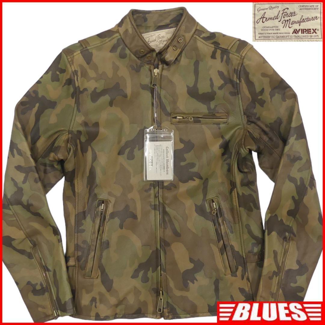 > 即決★AVIREX★メンズL レザーライダースジャケット アヴィレックス 40 迷彩 カモ柄 本革 シングル 本皮 パンクロック ツーリング