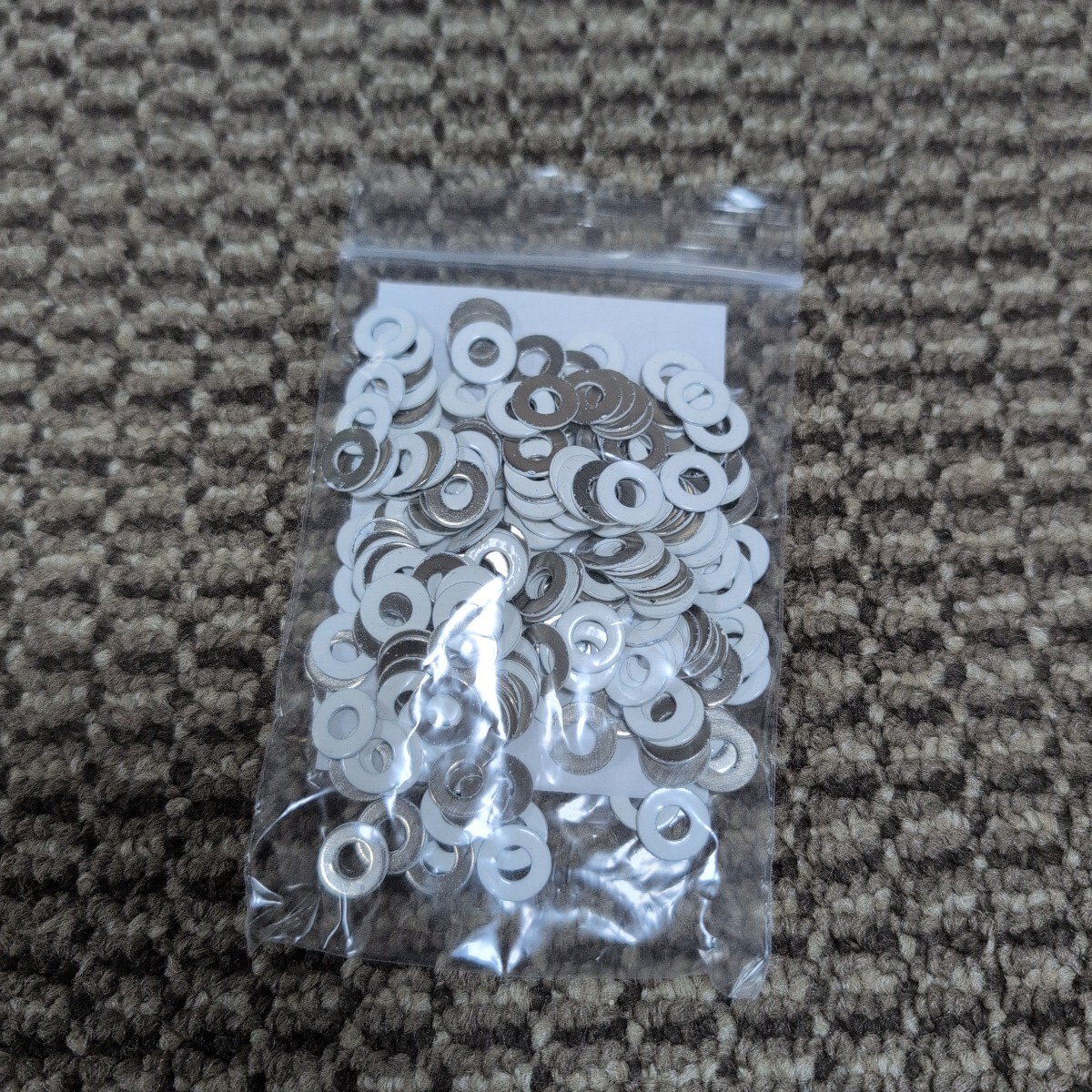 - ジャンク品/長期保管品/メーカー不明/ステンレス/ワッシャー/M4/ホワイト/片面/外径約10mm内径4.7mmT0.8mm/1P200本入り