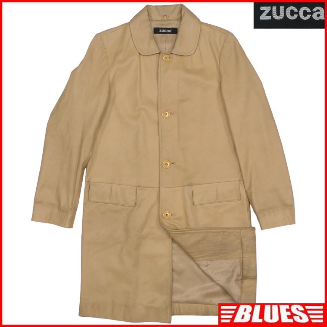 - 即決★zucca★メンズS レザーステンカラーコート ズッカ キャメル 本革 ジャケット 本皮 革ジャン ロングコート