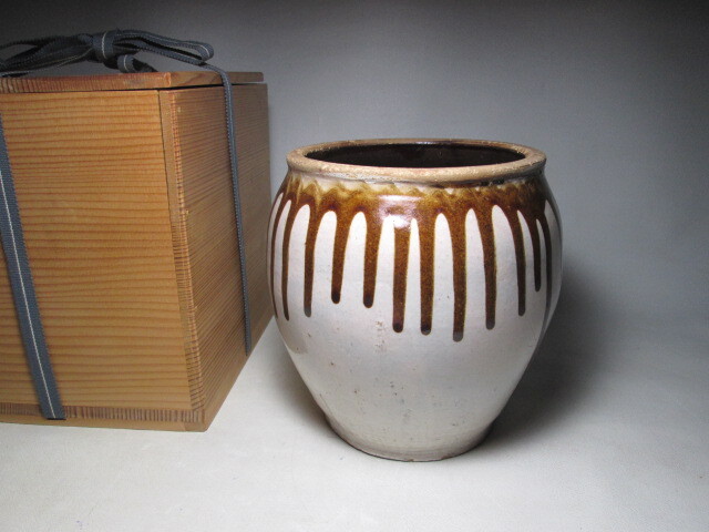 - ■白丹波流釉壷(水指)江戸期・補修有■検)古丹波お茶道具