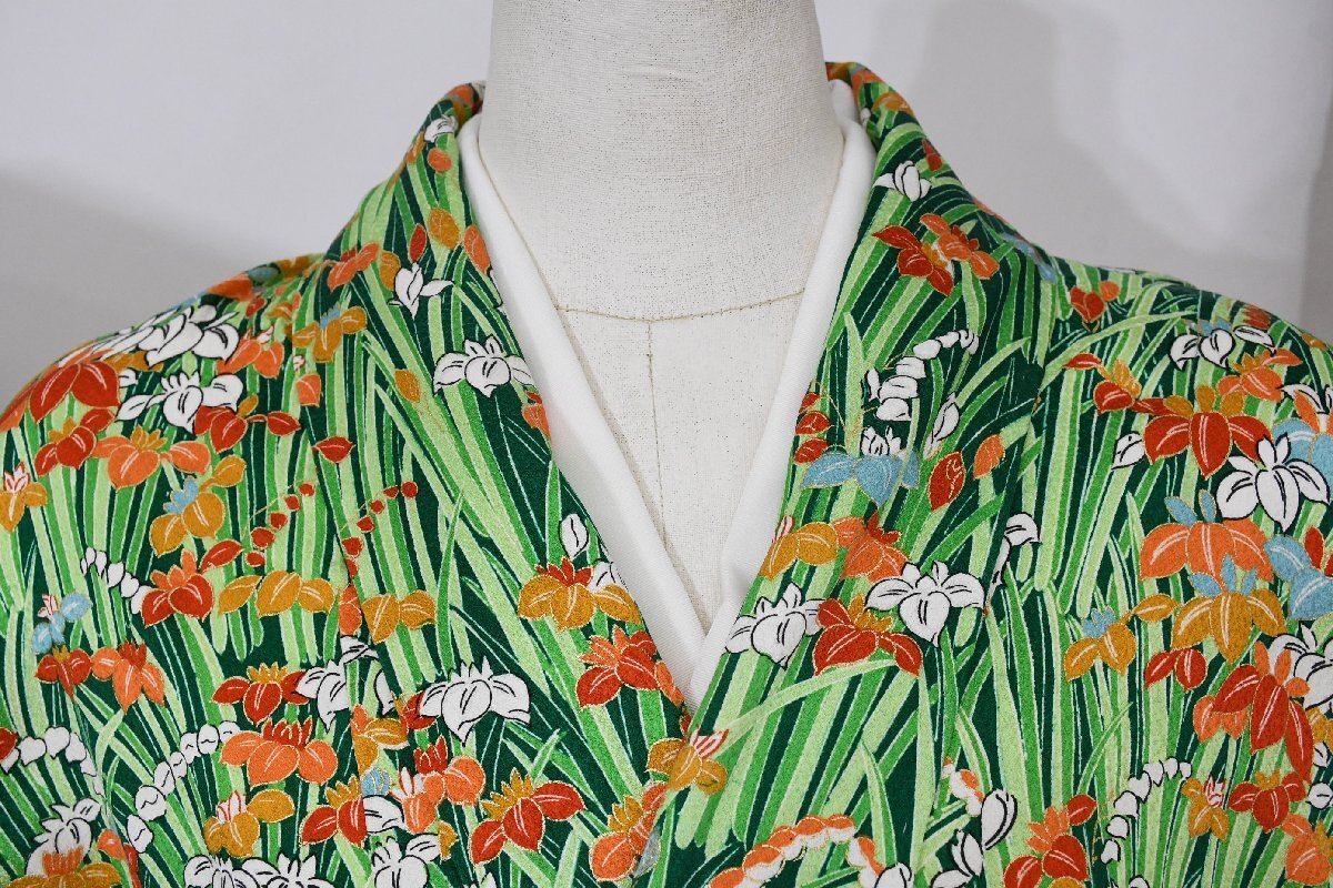 > 小紋 着物 袷 菖蒲 正絹 春 身丈152cm 裄丈63cm ★ kb-6920 桜庭呉服店