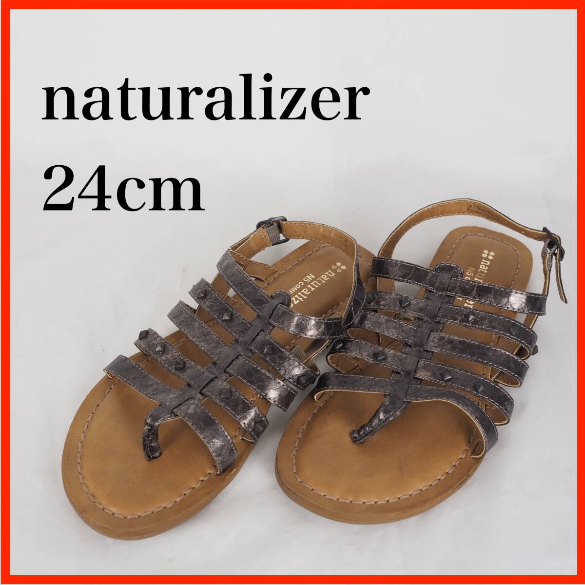 - OK3990★美品★ポスト投函★naturalizer*ナチュラライザー*レディースサンダル*ストラップ*スタッズ24cm*グレー系*茶系