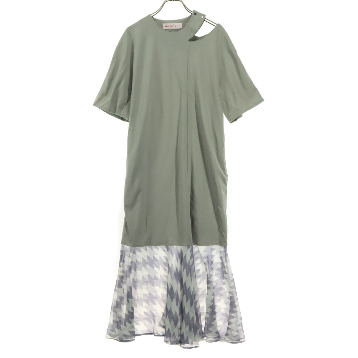 美品 mint designs ミントデザインズ 日本製 半袖 ロングワンピース 2 グレー シースルー レディース