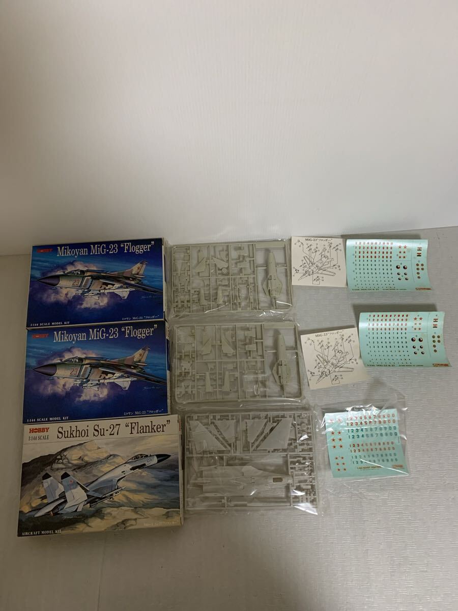 > ツクダホビー プラモデル3個まとめセット/ミヤコン MiG-23 フロッガー2個/スホーイ Su-27 フランカー/未組立/梱包材黴等/ジャンク扱い