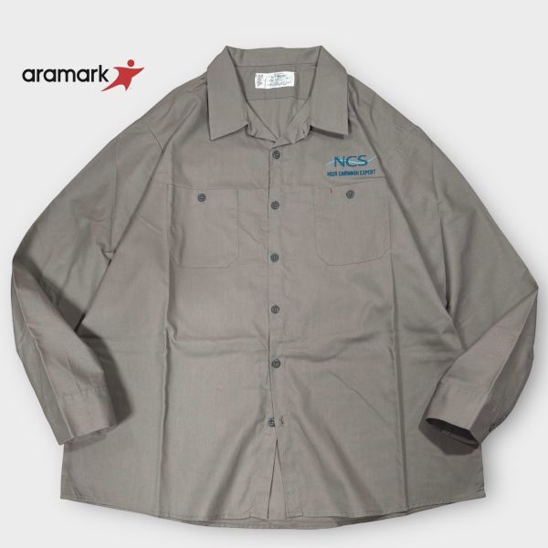 > ★美品★NCSロゴ刺繍★aramark 長袖ワークシャツsize1XLR USA古着 クリーニング プレス済み 2474