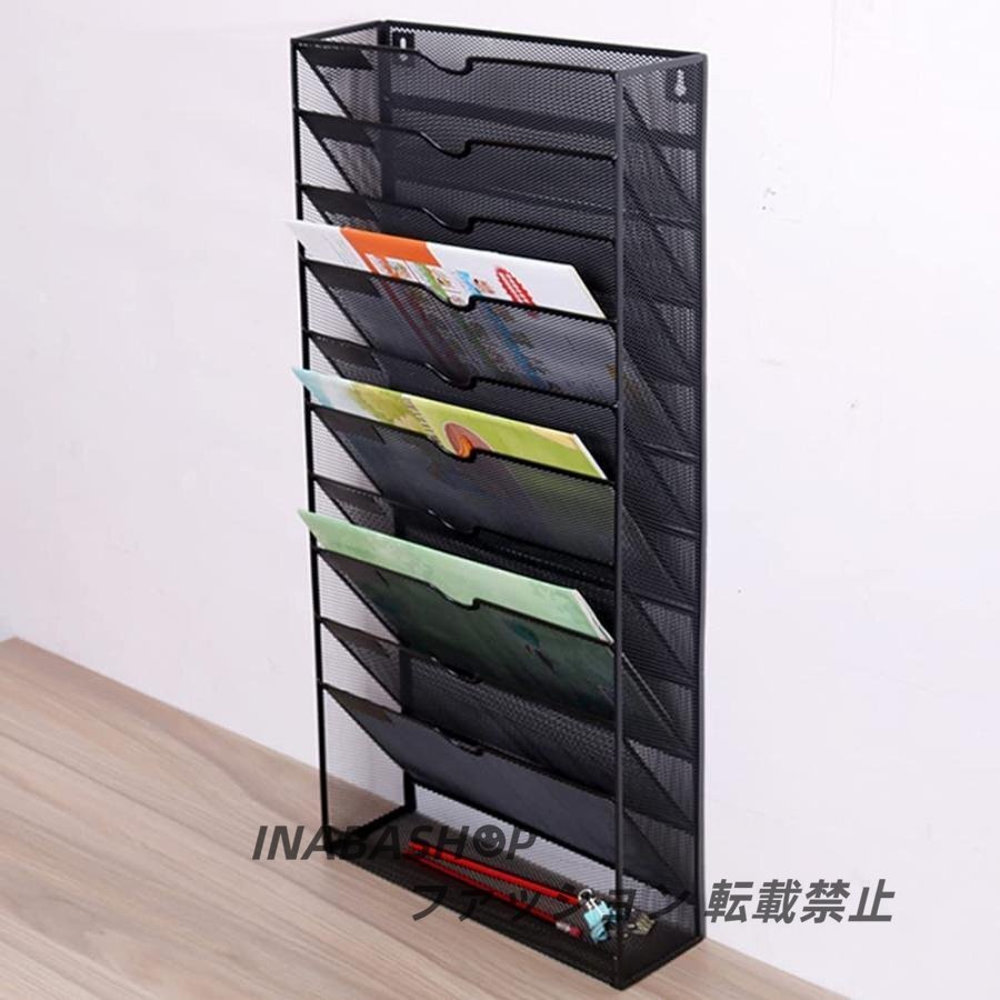 - 書類収納 壁掛けラック 収納ラック金属10段ウォールポケット マガジン 整理用品 壁掛け収納ケース吊り下げ 雑貨入れ 絵本小物入れ 取付簡単
