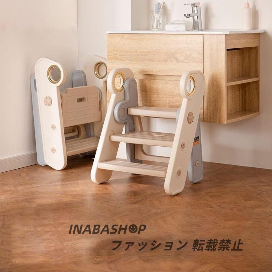 - 踏み台 子供 手すり付き2段/3段切り替え 折りたたみ キッズ ステップ台 登り台おしゃれ滑り止め洗面所 手洗い トイレトレーニング 耐重50kg