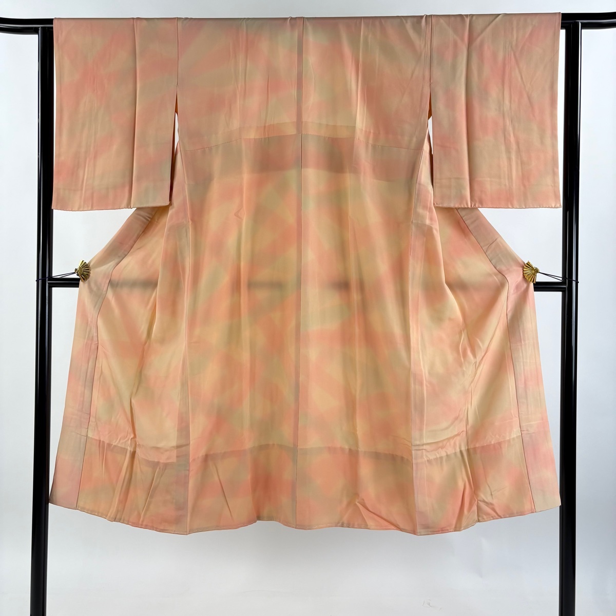- 長襦袢 身丈130cm 裄丈61.5cm S 斜め格子 ぼかし サーモンピンク 正絹 秀品 【中古】