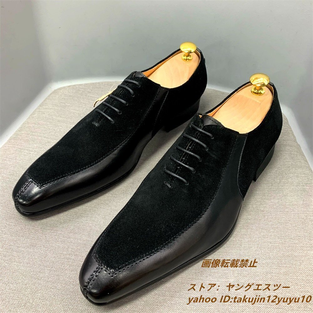 > 最高級*定価9万 ビジネスシューズ 本革 レザーシューズ 職人手作り 超希少 スエード革 紳士靴 牛革 フォーマル 革靴 ドレス 結婚式 24.0cm
