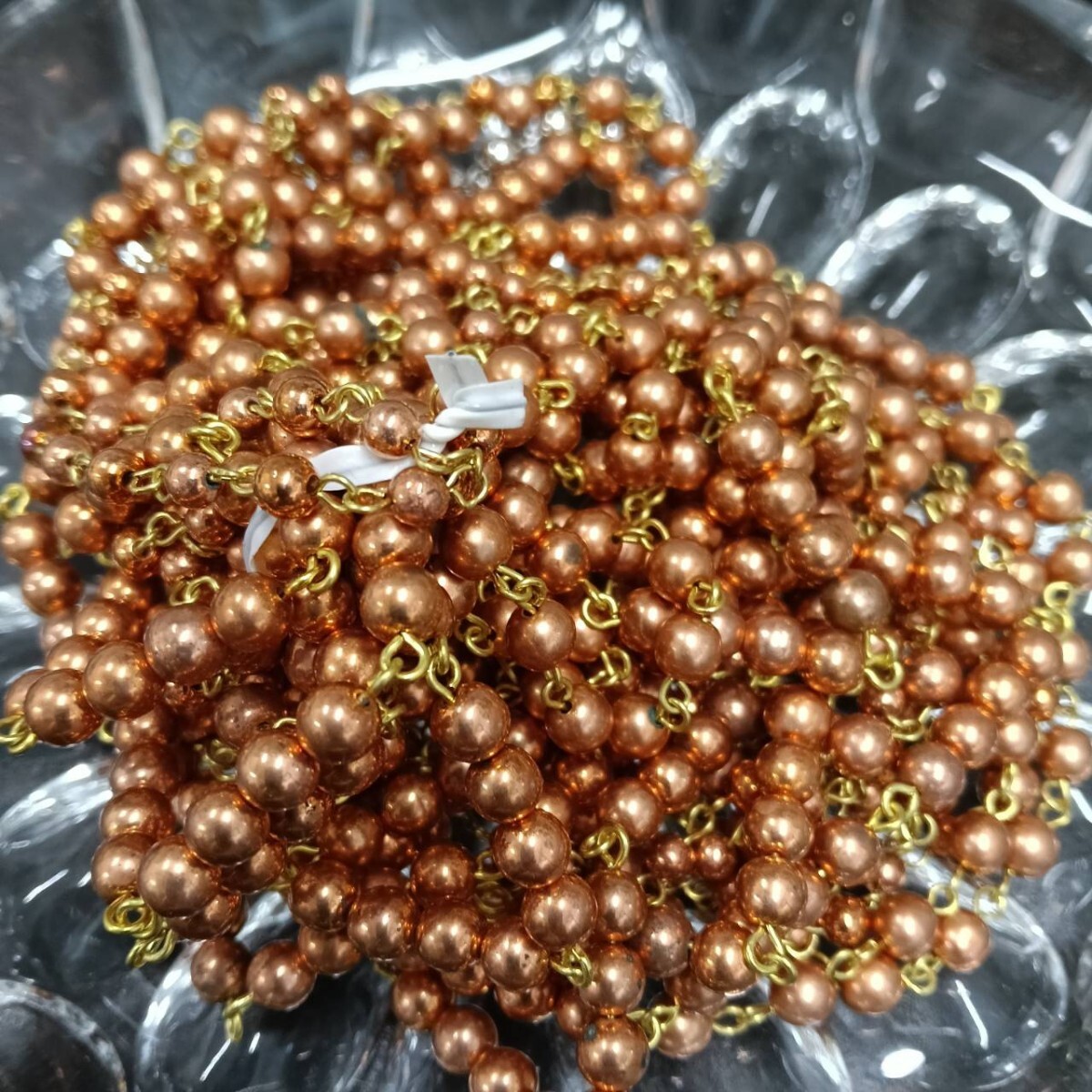 > ☆未使用 大量 銅メッキ ビーズチェーン ラウンド 約151g 5mm ブラウン ヴィンテージ パーツ アクセサリー ネックレス イヤリング S-397