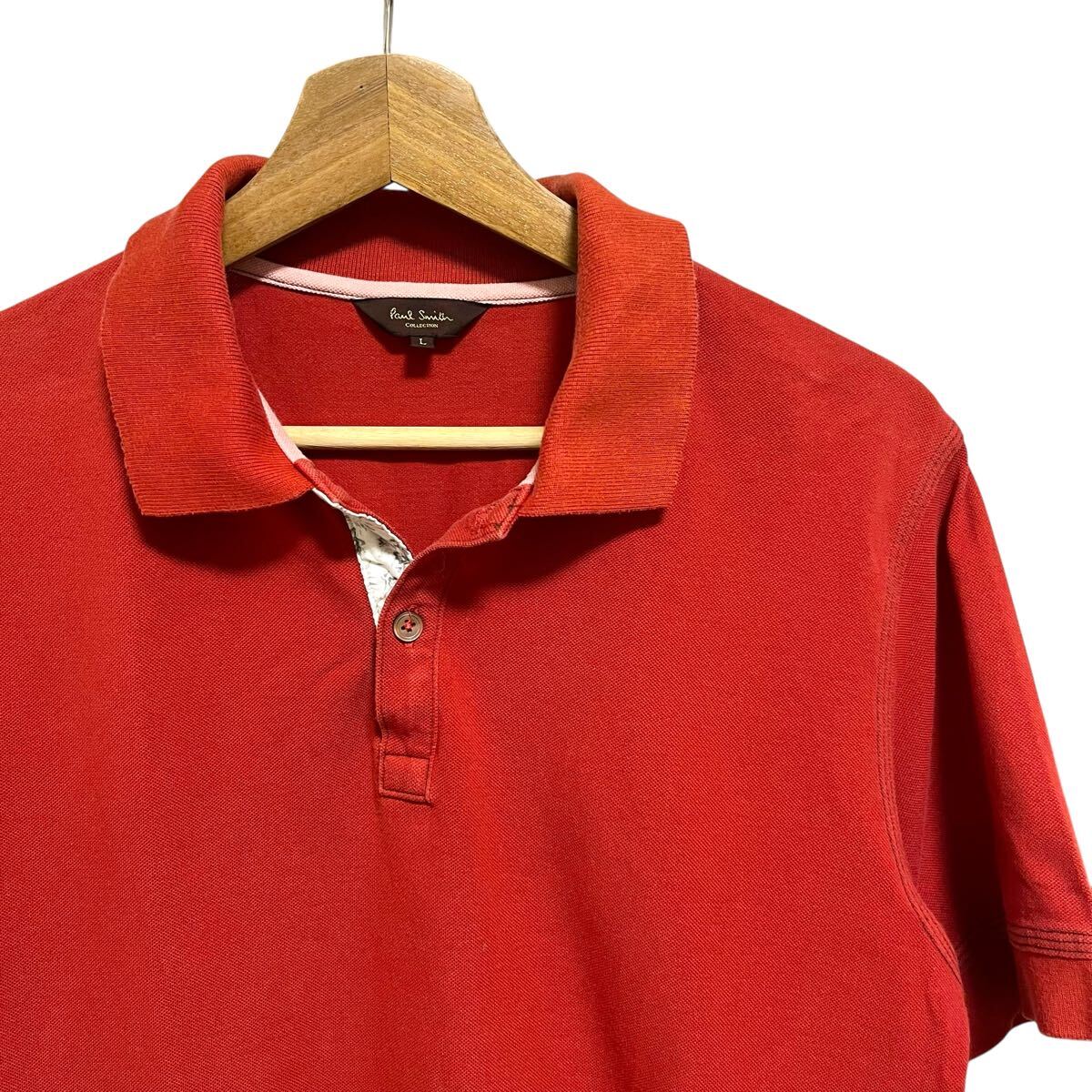 > ※N Paul Smith collection ポールスミス 半袖ポロシャツ レッド系 鹿の子編み コットン100% 日本製 ゴルフウェア サイズL