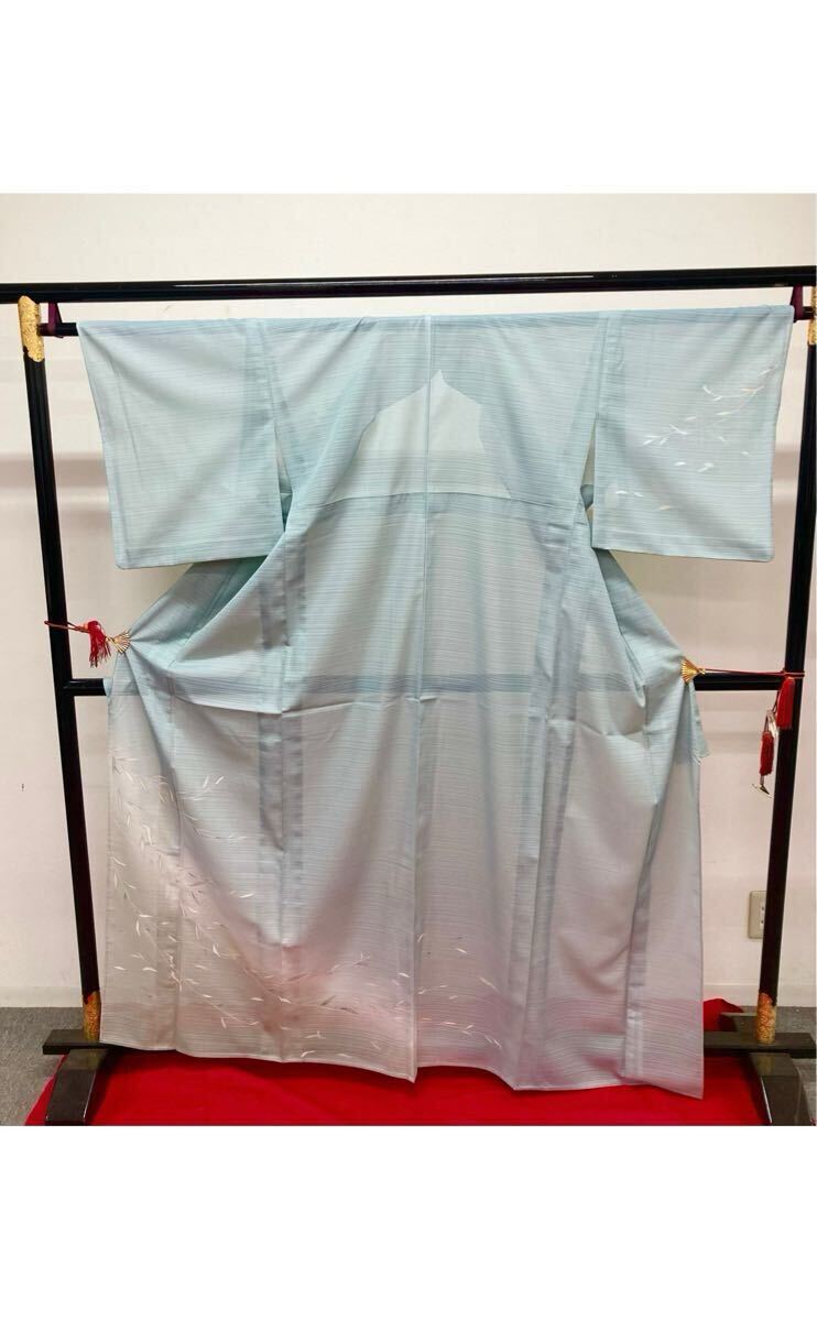- 堀-20》夏着物 水色 青 青色 着物 薄物 ブルー 女性用 お出かけ 訪問着 式典 和服 和装 (230309)