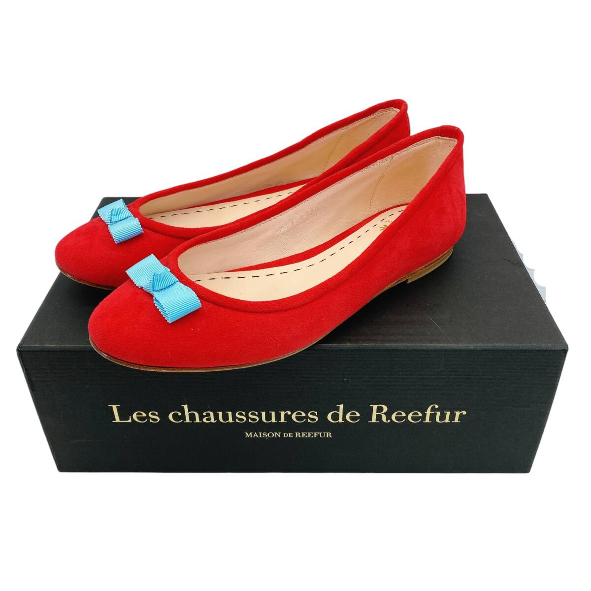 > ■ 良品 メゾンドリーファー リボン バレエ フラット シューズ パンプス 36 1/2 梨花 22.5㎝ レッド MAISON DE REEFUR ■
