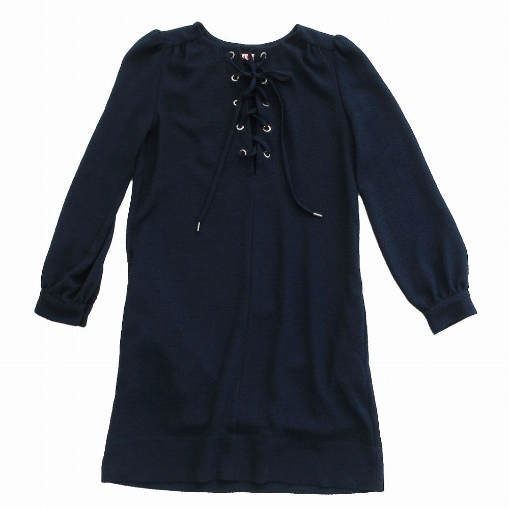 > SEE BY CHLOE シーバイクロエ 総柄 レースアップ チュニック ワンピース 長袖 ひざ丈 ネイビー サイズM レディース 【中古】