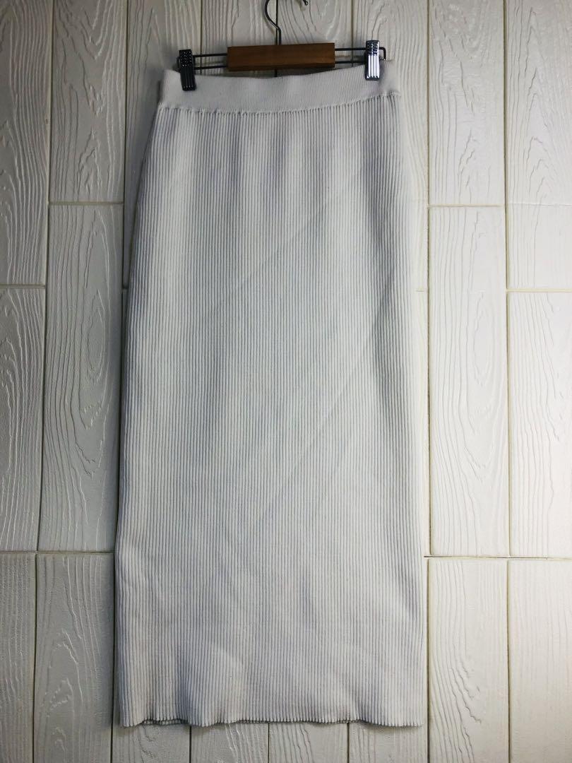 - ホワイト リブスカート ウエストゴム60cm 82cm丈