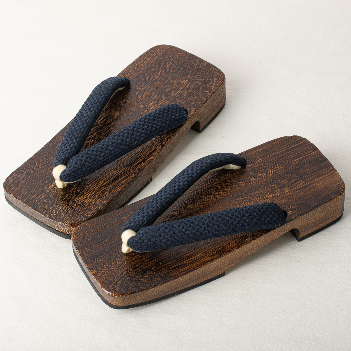 - 焼き桐下駄【3701-1 メンズ】(刺子調鼻緒 桐下駄 滑り止め ラバー付き )