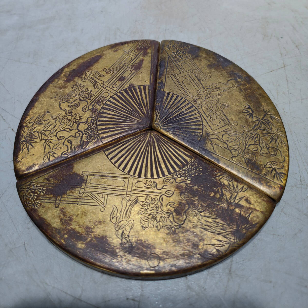 - 8+GV7417「東洋美術」人間国宝 中国骨董 銅製品【純手彫り【美】扇形銅定規セット】 旧物 珍品 精美 收藏品 中国の古い美術