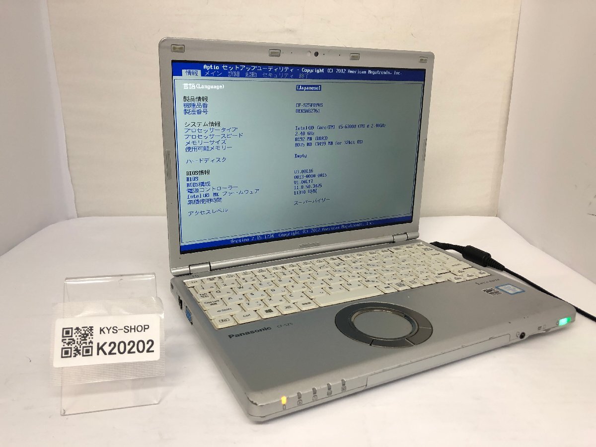 - ジャンク/ Panasonic CF-SZ5PDYVS Intel Core i5-6300U メモリ8.19GB ストレージ無し 【K20202】