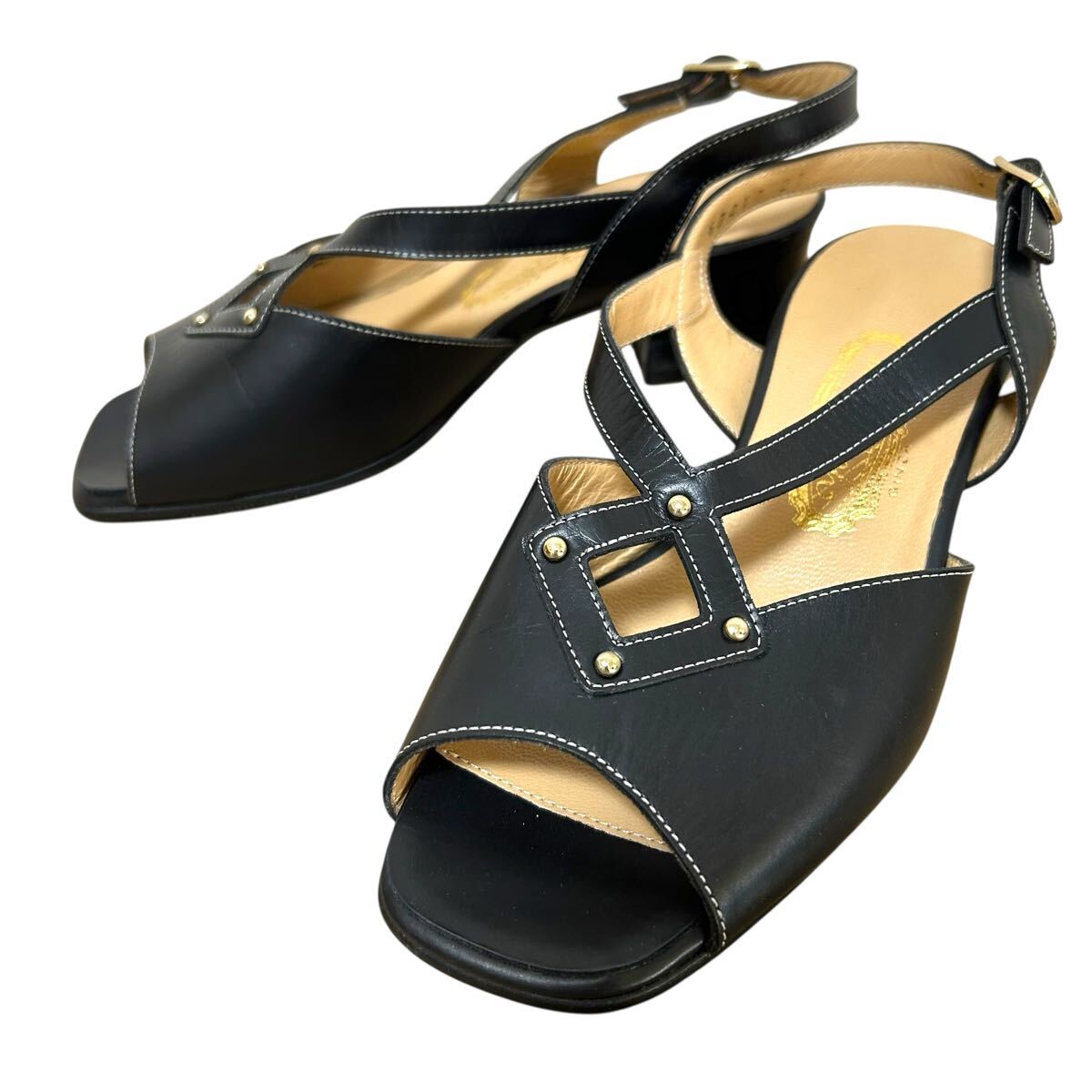 - ※SD 【状態良好】銀座ヨシノヤ ヒールサンダル クロスストラップ オープントゥ ブラック 日本製 21cm