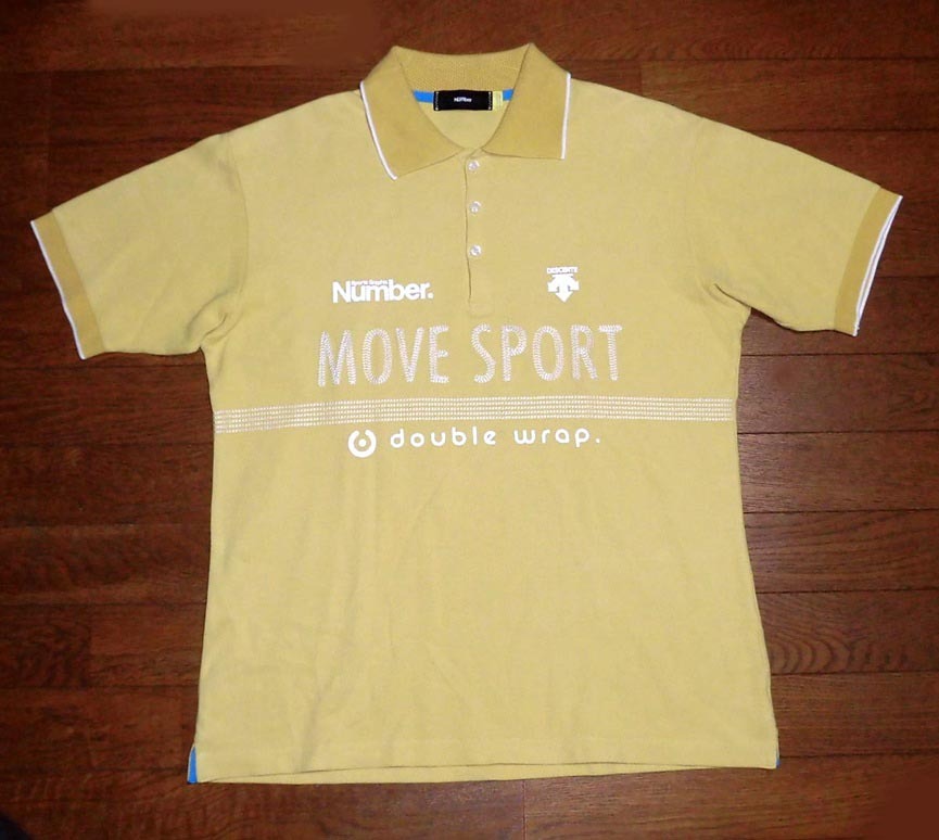> DESCENTE MOVE SPORT X Number デサント ムーヴ スポーツ ナンバー コラボ ポロシャツ レアモデル 半袖 ドライカノコ YEL L 使用僅 美品