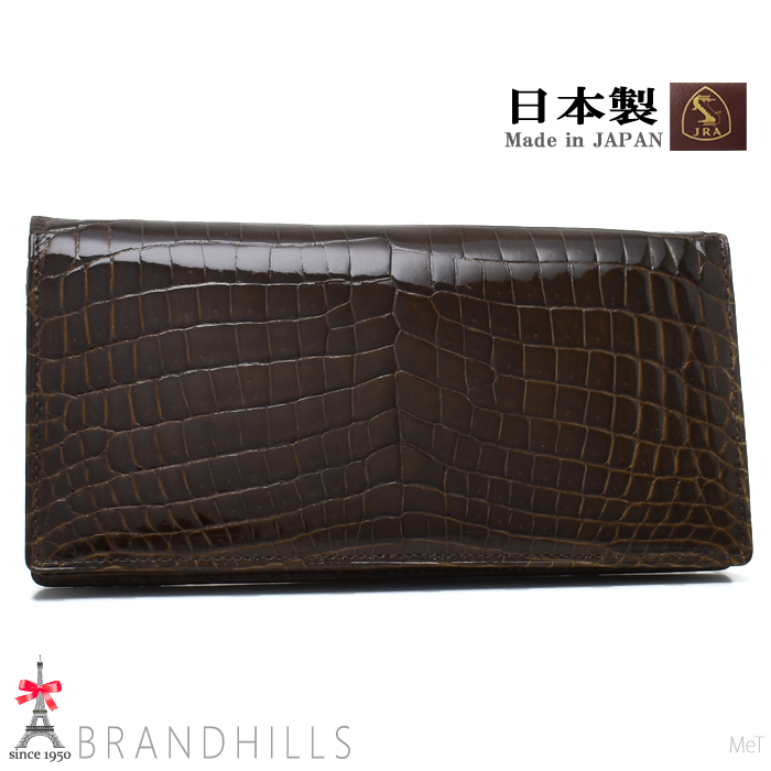 - クロコダイル 長財布 メンズ レディース ブラウン シャイニング加工 一枚革 センター取り 無双 日本製 JRA 新品