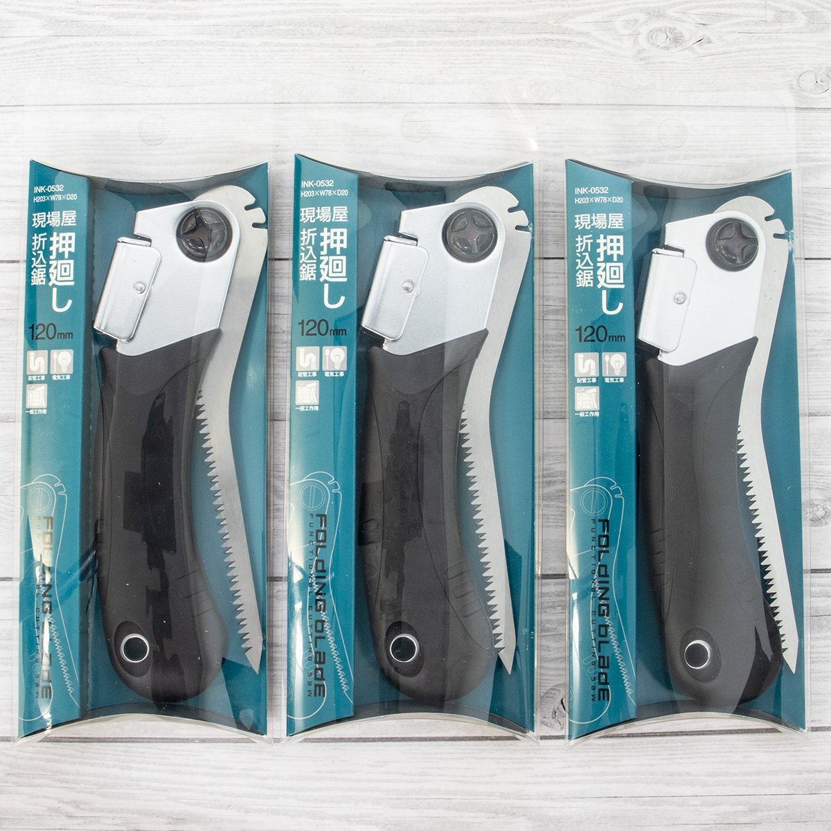 - 現場屋 押廻し 折込鋸 120mm INK-0532 / 3点 未使用品 長期倉庫保管品 JAN:4931025005328 のこぎり 配管工事 電気工事 一般工作用 石鋸工業