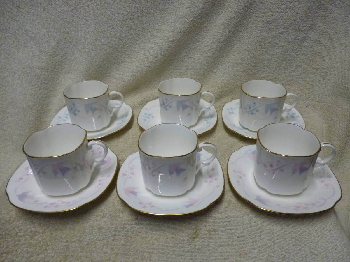 > ◆新品 保管 NINA RICCI Plaisir de la Maison Sango.MAGNA ニナリッチ 三郷陶器 ティーカップ&ソーサー 6客セット 元箱無◆ピンク&ブルー