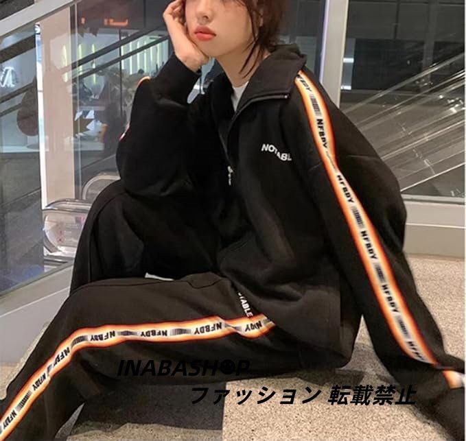 - 韓国風 2点セット レディース ジャージ 上下セットアップ スウェット パーカー ルーム アクティブウェア カジュアル ゆったり 大きいサイズ