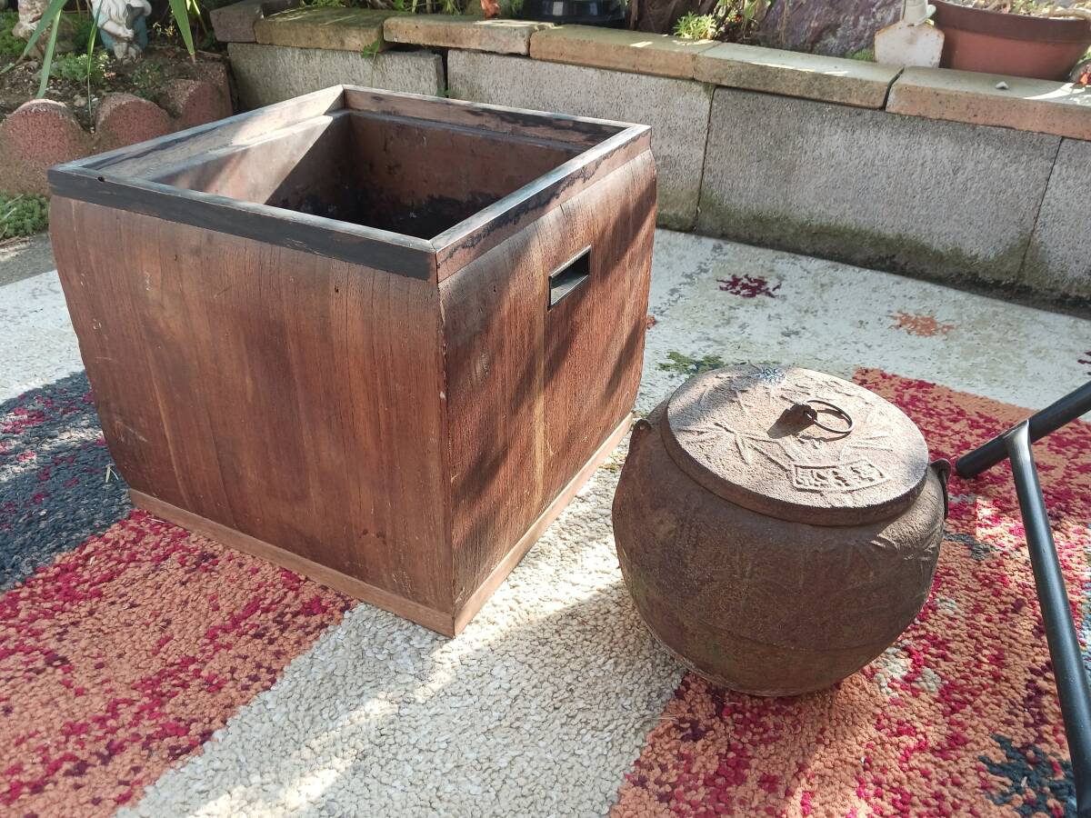 - M-140 茶道具 炉釜 あじろ釜 風炉釜 朝鮮風炉 茶道具 茶釜 鉄釜 三つ足 炉釜 茶器 茶道具 骨董 煎茶道具 鉄瓶 鉄器 古美術 工芸品 時代物