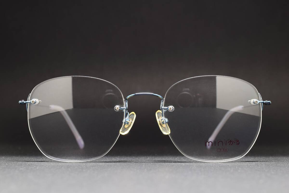 > デッドストック miniかる 7149 51-19 軽量3.5g リムレス メガネ サングラス フレーム 日本製 ブルーメタリック ヴィンテージ ふちなし