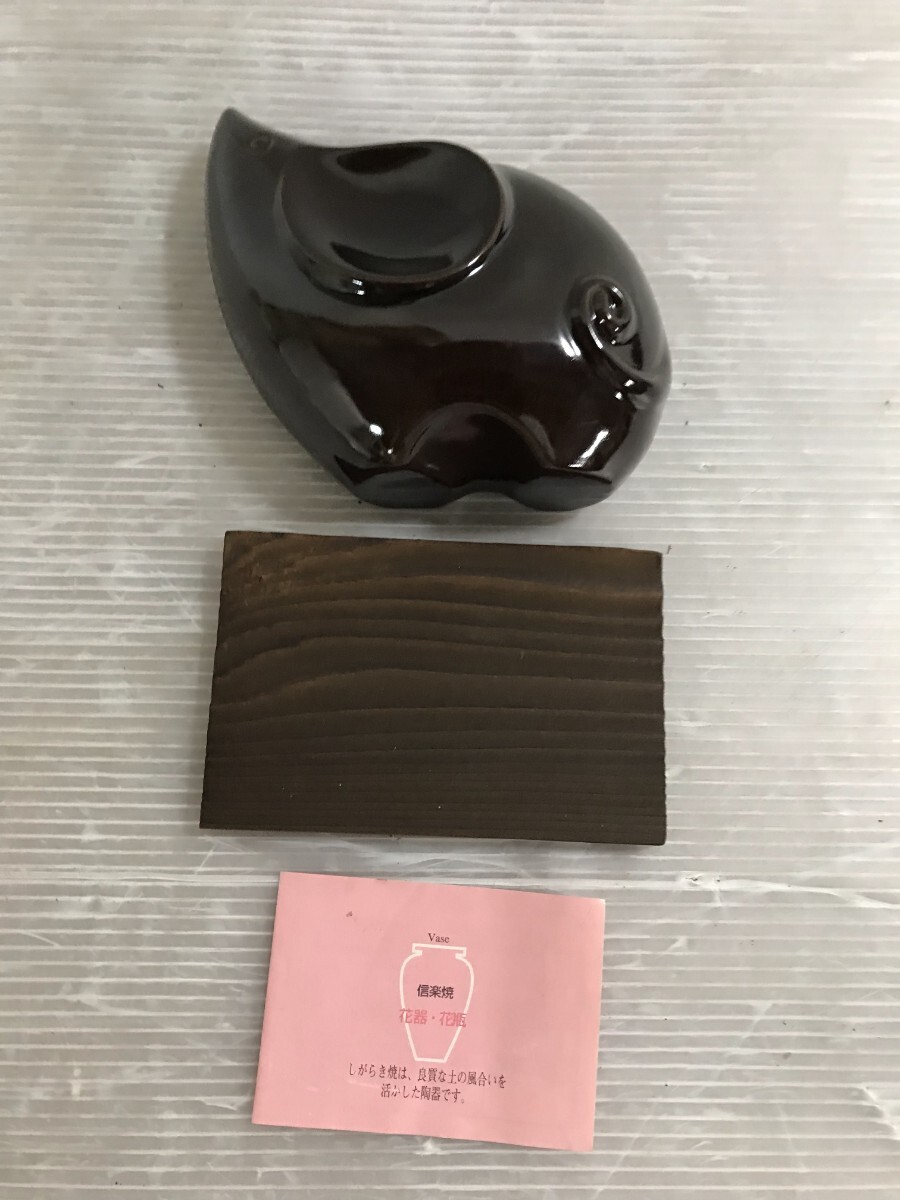- 山/花瓶/花器/信楽焼/陶器/置物/置き物/山8-55漆