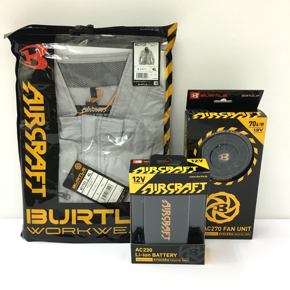 > ●【同梱不可】【100】未使用品 バートル ファン付き作業着 4L/AC230 リチウムイオンバッテリー/AC270 13Vファンユニット 3点セット