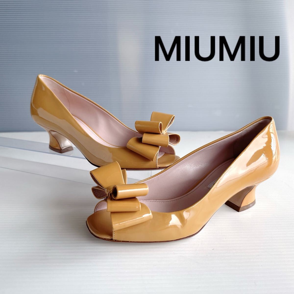 - MIUMIU ミュウミュウ リボン オープントゥ 太ヒール ローヒール サンダル オープントゥ ミュール パンプス 34.5 レーディス シューズ 靴