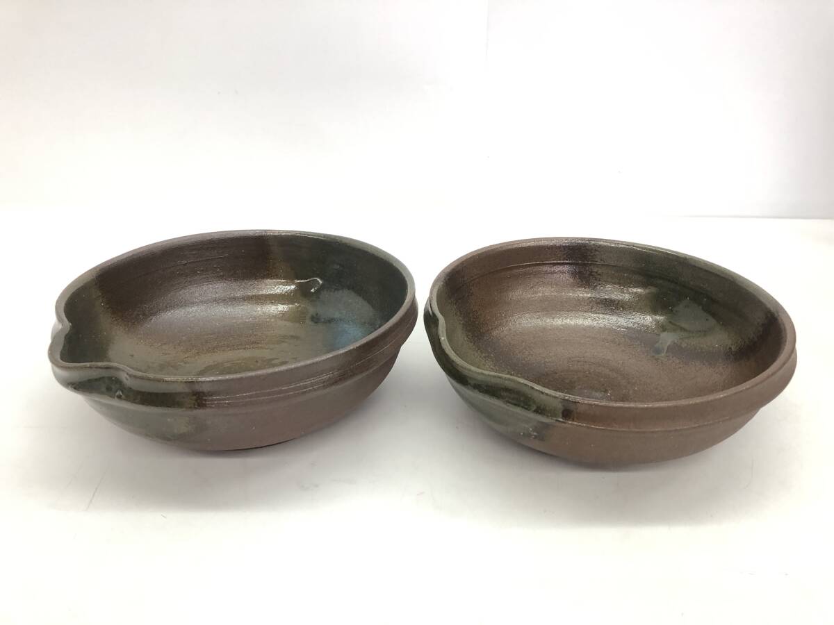 - 美品 在銘 片口 大鉢 大皿 深鉢 深皿 盛鉢 盛皿 多用鉢 麺鉢 ラーメン鉢 和皿 和食器 陶器製 直径21.5㎝ 高さ7㎝ ペア 2客セット
