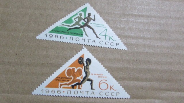 - ①珍切手 三角切手 ソ連 国際スポーツイベント(1966年) 2種完 1966-05-26