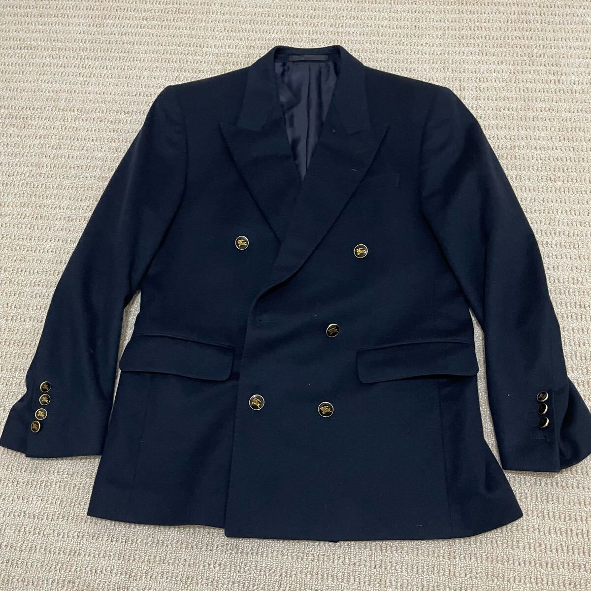 - バーバリーズ 金ボタン ダブルブレザー ネイビー ウール カシミヤ メンズ46 M
