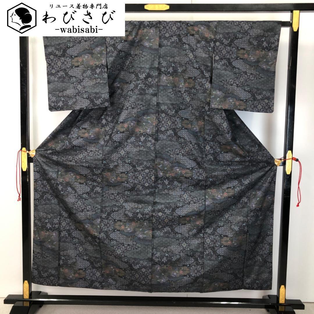 - 本場大島紬 カタス 7マルキ 七宝 亀甲 花唐草模様 K-5169 着物 きもの kimono 和服 和装 中古 リサイクル着物 【送料無料】