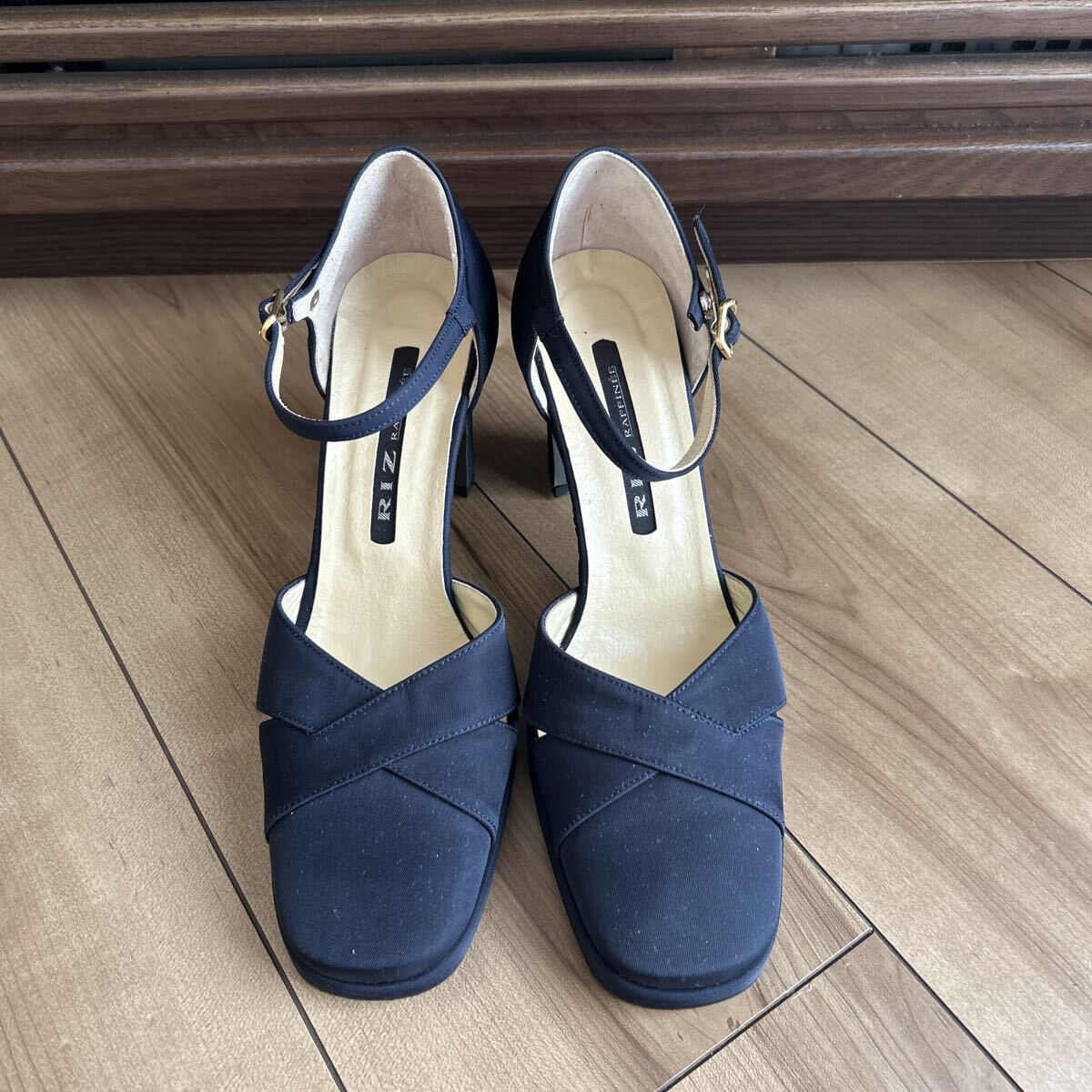 - リズラフィーネ Riz raffinee パンプス チャンキーヒール ストラップ ヒール 24cm ネイビーレディース 靴