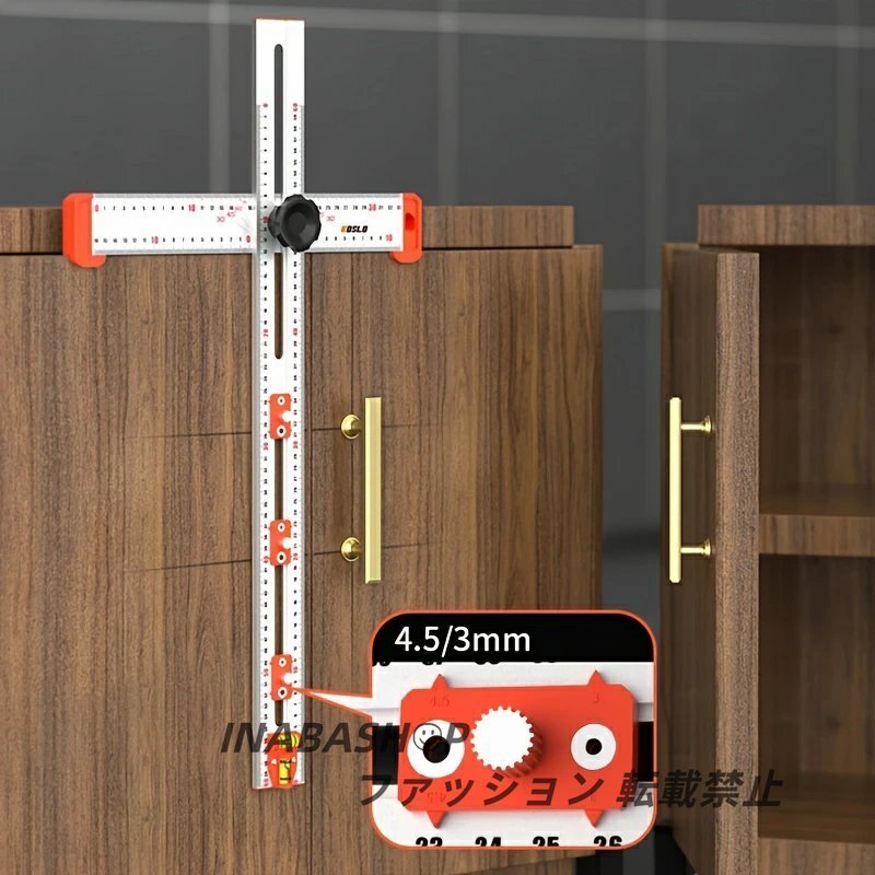 - 1pc 2-in-1 穴あけ位置決め定規と組み合わせ角度定規、引き出し取り付け用 T 型キャビネットハードウェアジグ 木工ツール