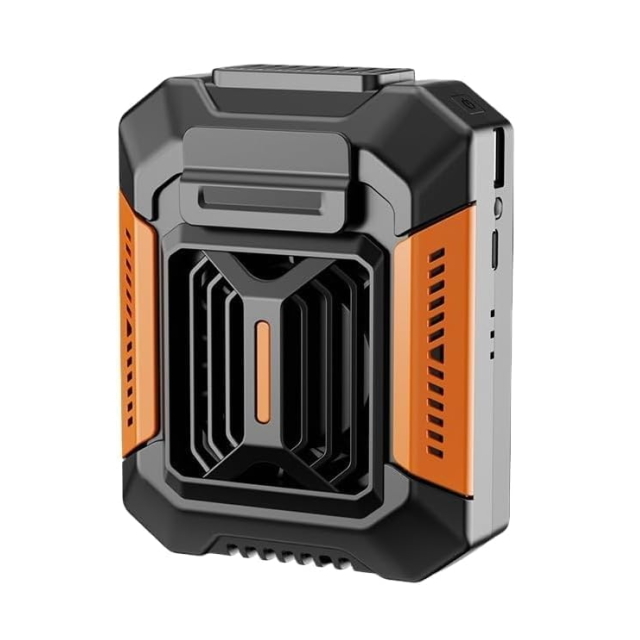 - 腰掛け冷却ファン オレンジ クリップで簡単装着 携帯扇風機 大風量 首掛け/腰掛け/卓上/手持ち 熱中症対策 USB充電ハンディファン3段階風量