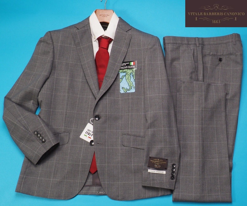 - 新品10.8万円 大手百貨店扱い 春夏 日本製『CANONICO カノニコ イタリア製生地』Super120S ウール ウインドペン スーツAB6灰(G) 1706291