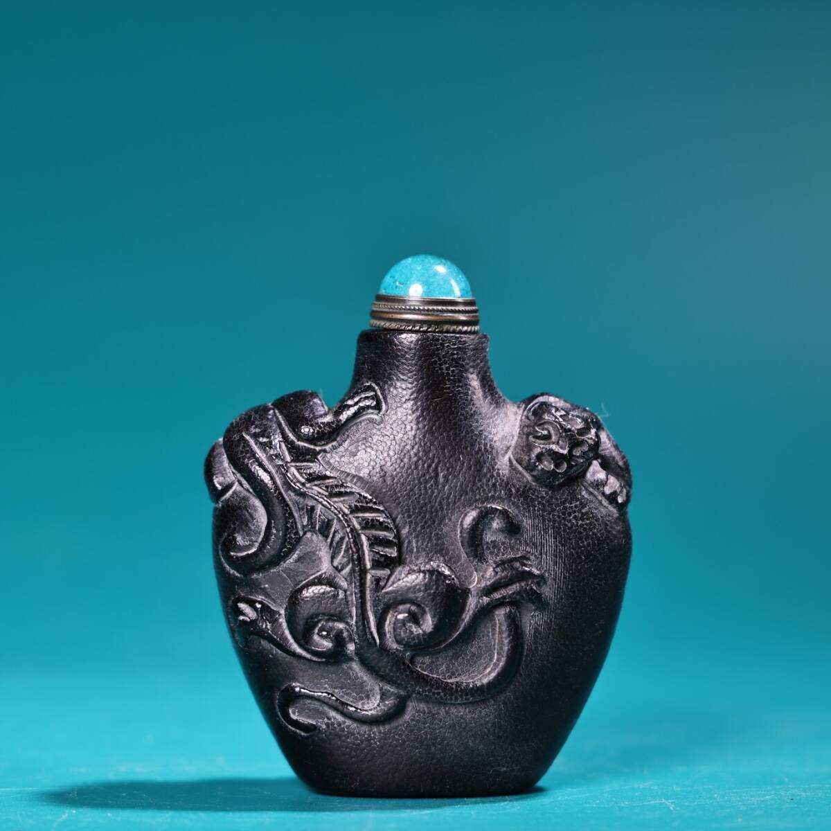 - 『館蔵珍品 角材細密彫 神獣紋 鼻煙壺 根付 裝身具』稀少珍蔵品 古賞物 貴重物品 収蔵品 中国古美術 時代物 古董品