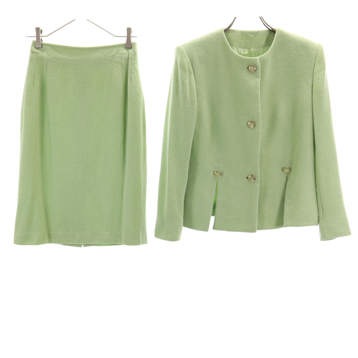 Herno ヘルノ イタリア製 ウールブレンド ツイード スカートスーツ 上下セットアップ 42 グリーン系 レディース