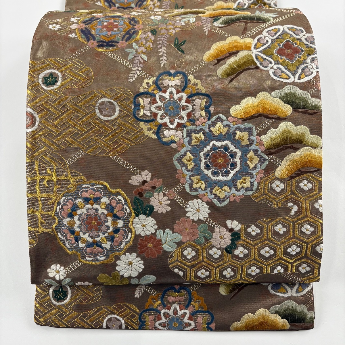 - 袋帯 美品 逸品 華文 松竹梅 刺繍 金銀糸 金色 六通 正絹 【中古】